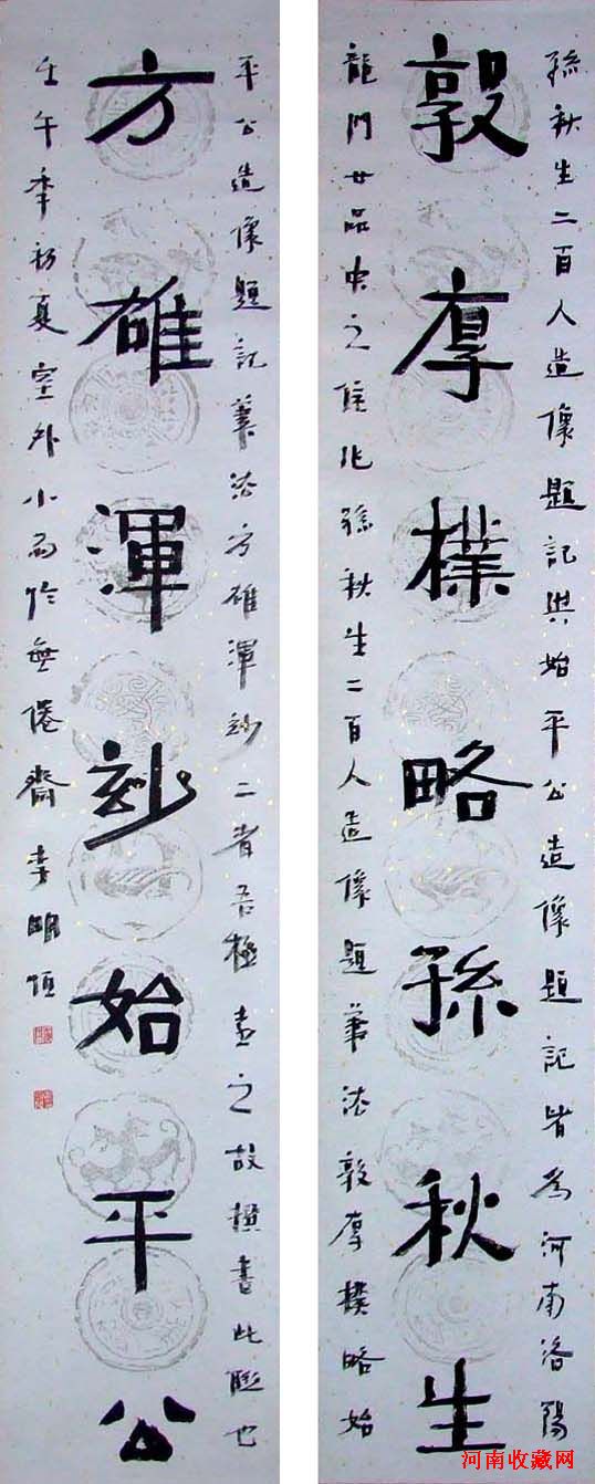 李明恒是一位冷静的、善于思考,勇于探索、务实的书法家。他经历了从八十年代初到现在二十多年书法热潮的全过程。他清楚的知道,一个立志于书法事业的人要想创作出精品,光浮在上面跟风打转赶热闹是绝对不能奏效的。他在书法浪潮一波高过一波,浮躁与虚荣,名利占据人们心灵的时候果断地沉了下来,一沉三年。这期间他没参与任何形式书法的展览活动,他远离尘嚣,虚极守静,对中国地书法史,历代名碑帖、书论,书法演变发展再一次进行全面的探源性的研究,从书法对文化传承的体悟中提升他的文化理念、笔墨情绪、审美意识,将书法作为自己的思想观念和精神境界的抒发。在宏观的把握中找准他学习和下笔的切入点。由于他对书法的再认识,所以大胆地跨越宋、唐,直追秦汉,抓住汉碑,六朝墓志,造像题记,摩崖刻石不放,细心体味,反复临摹,扎根于传统深处,探妙求源,怀着极大兴趣,乐此不疲地狠狠弄了几年。源深根固,花盛果硕,天道勤酬,李明恒的作品得到了飞跃性的进步。眼前看到的作品令人耳目一新,既保留了他过去作品中的晋唐书法中的清冽雅逸的神韵,又明显的透露着汉魂书法的风骨、风貌。他将帖和碑的用笔巧妙地揉合在一起,凛然雅逸,古拙玄远,融会古法,独臻妙境,既把握住传统法度,又显示出强烈地创作理念和感情个性。以上两点是书法家都想做而又很难做到地,李明恒显然突破了这两个难题,他成功了。