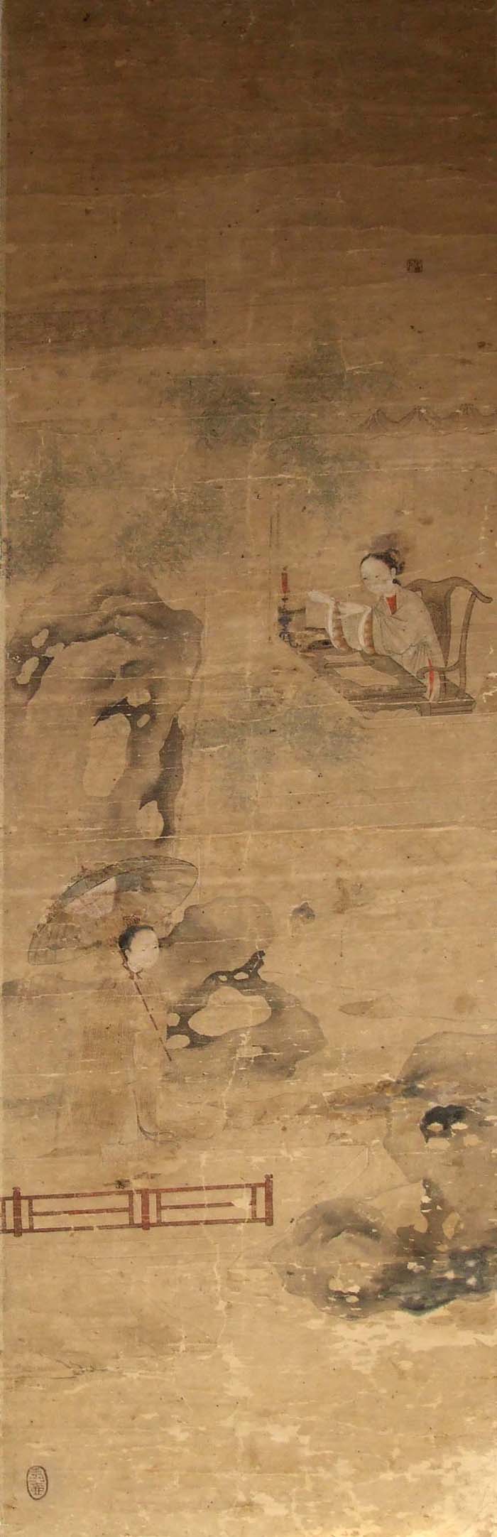 改琪,1774-1829,字伯蕴,号香白(又七芗),别号玉壶外史,先祖为西域人,后侨居松江。擅长画仕女,亦能山水、花草。所画仕女,形象纤细俊秀,用笔轻柔流畅,创造了清后期仕女画的典型风貌。他绘制的《红楼梦图咏》木刻本,流传广泛,深得时人好评。所作人物、肖像也很简洁生动。传世代表作品有故宫博物院藏《玄机诗意图》轴等。