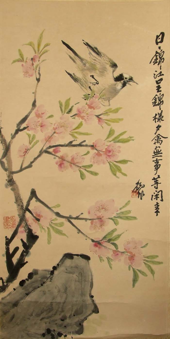 陆抑非先生除花鸟外,兼工山水,粉图黄纸,以臻其妙,以其不轻出示人,遂亦少为世所知。