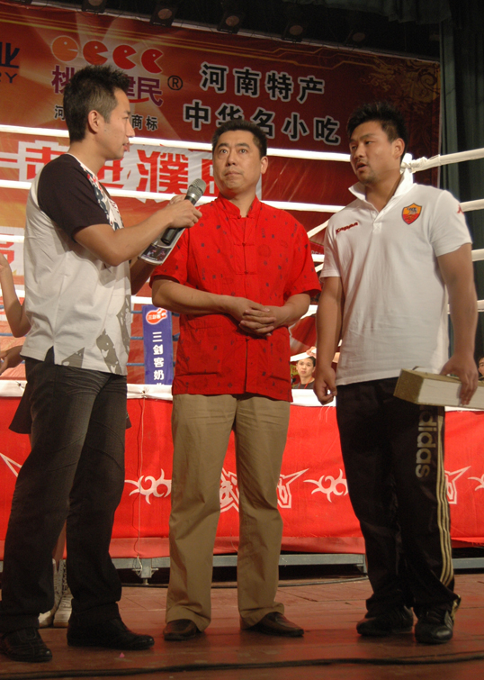 5月11日,河南卫视栏目《武林风》在龙乡濮阳进行了民间功夫高手激烈角逐,比赛期间中华英雄王洪祥与观众进行了互动和沟通,濮阳市著名刀书画艺术家、中国“刀笔王”一王濮方将自己创作的东方刀书画《武》现场赠予王洪祥收藏,此举,再次展示了东方刀画独特的艺术魅力和文化精髓,同时也弘扬了濮阳市民间艺术。