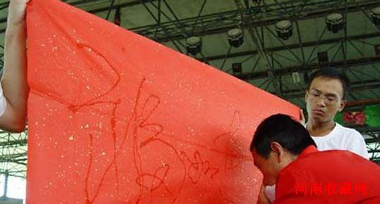 河南洛阳书法奇人茹安听表演独门绝技眼睛喷水写字。作 者:孙建驹
