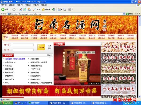 要按说,我最没资格说酒了。 一是本人不胜酒力,充其量也就是装半斤;二是不会品酒,对酒也知之甚少。 然而,一次偶然的机会,却使我对酒尤其是白酒产生了浓厚的兴趣。 那时,因要为一白酒企业制作一个专题,工作逼迫我查阅大量有关白酒的资料。期间,我了解到我们河南是白酒的发源地,河南是全国最大的白酒消费市场,河南白酒即豫酒曾有过辉煌的历史,同时也了解到川酒、黔酒、徽酒、苏酒等纷纷问鼎中原、逐鹿中原......因为他们都明白河南有将近一亿的人口,他们都明白河南地处中原、四通八达,他们更明白“得中原者,得天下!” 但是,自九十年代后期以来,由于种种主客观原因,使得豫酒暂时处于低谷。身为河南一员,顿觉责无旁贷,故萌生了制作“河南名酒网”、为豫酒振兴奔与呼的想法! 河南有着悠久的历史,河南有着深厚的文化底蕴,河南有着亿万勤劳智慧的人民,我们坚信:经各方志士努力,豫酒必将走出低谷,豫酒必将走向辉煌!