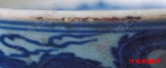 器件口边有细微的损伤,釉断续剥落,手摸有毛糙棱刺感。