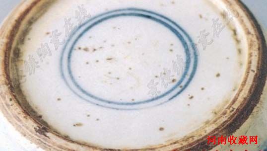 瓷器坯体在烧制过程中与其他坯体粘连在一起,出窑后在器件上留下的粘结痕迹