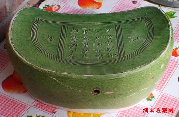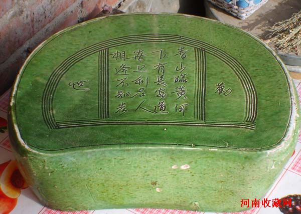 绿釉划花枕