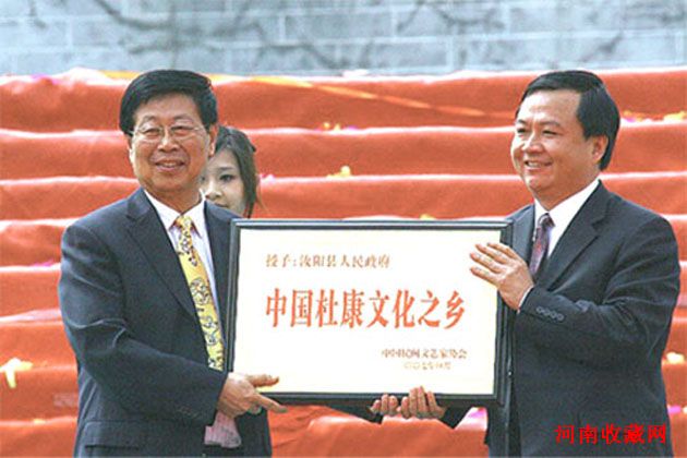4月25日上午,“中国杜康文化之乡”授牌仪式在河南省汝阳县西泰山文化广场举行。中国民间文艺家协会副主席、河南省文艺家协会主席、省文联副主席夏挽群,河南省民间文艺家协会副主席、秘书长程健君出席了授牌仪式。洛阳市政府,政协,人大领导和汝阳县四大班子领导及数千名观众参加了这一授牌盛会。程建君先生首先宣读了中国民间艺术家协会关于对汝阳县授予“中国杜康文化之乡”的命名决定,中国民间文艺家协会副主席、河南省文艺家协会主席、省文联副主席夏挽群先生进行了授牌。仪式结束后还举行了盛大的文艺演出。