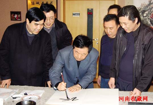 中国书法家协会主席张海、河南省书法家协会主席宋华平和画家张志泉、比干书画院院长、《华夏精英》杂志社社长兼总编傅世光等合影留念。
