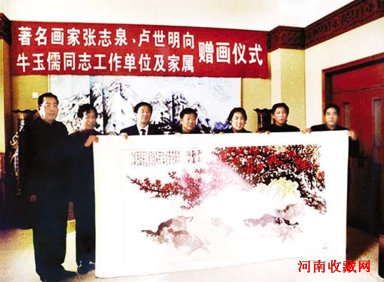 张志泉、卢世明、傅世光向牛玉儒工作过的单位及家属赠画仪式,呼市副市长董恒宇、宣传部常务副部长王文昌等领导参加仪式并亲切接见。