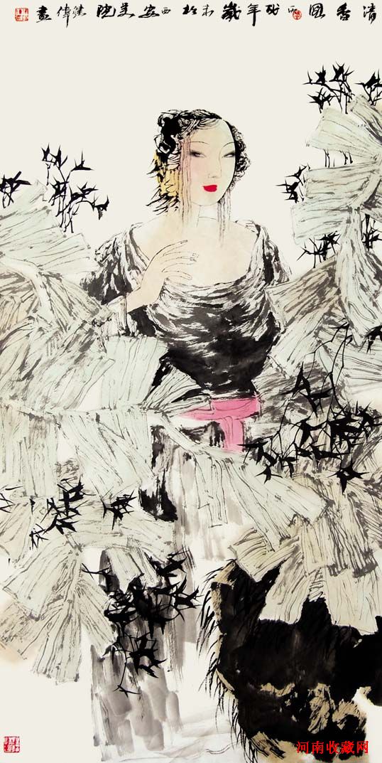 张健伟,师从原中国美术家协会副主席、西安美术学院院长刘文西教授。中国美术家协会会员,河南省美术家协会中国人物画艺委会委员,河南省国画家协会常务理事;现任河南师范大学美术学院副院长、教授、硕士研究生导师;西安美术学院在读博士研究生。