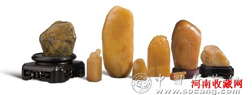 本次印章专场还汇集了田黄、杜陵、荔枝洞、环冻、芙蓉、高山、天蓝冻、连江黄、鸡血石、封门青、竹根等各类珍贵印材。其中重达214.4g的黄金黄田黄石香山九老薄意章,林清卿所雕的两方薄意章均是藏家极为乐意收藏的佳品。