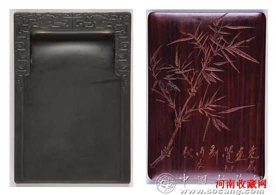 夔龙纹歙砚·唐云画、沈觉初刻红木砚盒