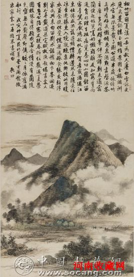虽然没有很高的学历,但启功先生很早就名满学界和书画界,在全国也堪称妇孺皆知。这从他于2004年5月8日目验于戊寅仲夏(1938)年所绘《仿米家云山图》(左图)(第53号拍品,估价500,000-600,000元)谈话记录中可见一斑:“这张画是我画的,严格说,不及格。当时由中国画学会组织的,会长是周养庵。作品在北京中山公园今雨轩展出。我的这幅画是挂在东边平房内的,这次画展还有评奖活动,我的这张画得了个所谓的三等奖。画虽然不及格,但是所临米帖未落一字,写得还算整齐吧。”所谓“不及格”,当然是作者的自谦之辞。此画虽是26岁之作,却笔墨淋漓,毫无稚嫩之气,深得米家之精髓。在对前贤画理的透彻理解和相当成熟的技法修养之外,他还成功地将其“胸襟蕴蓄”的品性发诸笔墨,境界不凡。启功先生由于教务繁忙,加上潜心学术研究,所以画作并不多。而且他的山水画多为小幅逸品,罕见大幅。此帧《仿米家云山图》是难得一见的较大尺幅的山水作品,堪称是启功山水画的代表作之一。