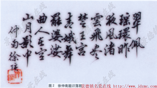 常见落款为:“仲南徐陔写”、“徐南写”、“竹里老人徐仲南”、“南州竹里老人徐仲南写于珠山栖碧山馆之西窗”等(图2)。