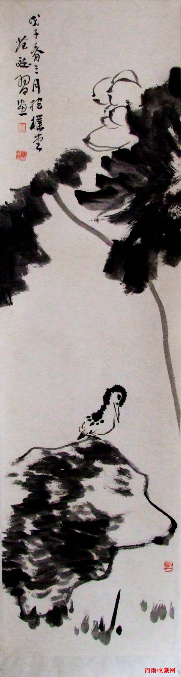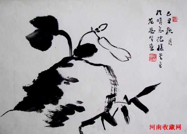 林散之于画用功极深,投入之精力不亚于甚至超过书法,成就却不如书法。他的画早期很好(上世纪四十年代中期),古法深厚,古意盎然,很有高度,同期的简笔山水画得也很到位,作于一九四四年的《草堂秋色》、《望天都》,一九四八年的《师雪个遗意》等作品,在各方面都达到了相当的高度,距大师一步之遥。后来,其画则每况愈下,晚期作品,密而不透,用笔过湿,且有堆砌之感。简笔山水,颇觉零散、琐碎,气韵不贯,未能达到理想高度。
