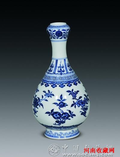 清乾隆 青花折枝花果纹蒜头瓶