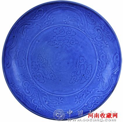 被以500万拍走的蓝釉暗刻云龙纹盘