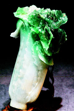 故宫国宝翠玉白菜,特色是菜顶端的螽斯。