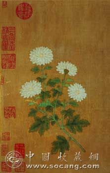 在2008年秋季拍卖会成交价总排名中,前10名中有3件古代书画,包括排行第一的金昆、郎世宁等《大阅第三图 阅阵》手卷,成交价5971.68万元;排行第4、第8分别为赵孟頫《滦菊图》(4788.96万元)和八大山人《山青水碧鸟语花香 册页(十七开)》(3014.88万元)。古代书画已渐渐在市场中崛起。