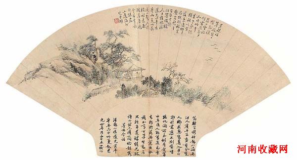 作者姓名:翁 雒年 代:清作品名称:山水尺 寸:宽50厘米,高17厘米质 地:纸本属 权:河南收藏网价 格:1. 5万联系电话:18637165438作者简介: