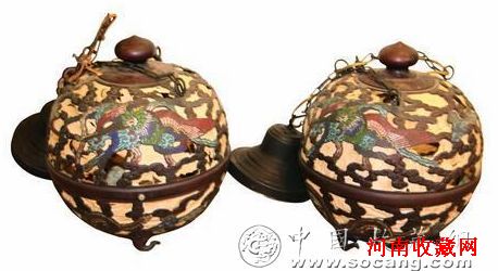 清 铜胎珐琅镂空龙凤纹香薰 一对