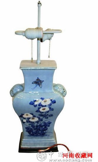 整体以经典的天蓝色釉为底色,配以青花釉里红绘制梅、兰、竹岁寒三友,伴随蝴蝶飞舞其间,展现了古代文人的君子之风且不失情趣的态度。器形唇口、长颈、丰肩、敛腹,近足处凸出两层台阶,似一方型梅瓶置于稳固的底座之上。两侧装饰较大形的镂空铺首耳,胜似一件带有水墨绘画的古朴青铜器。