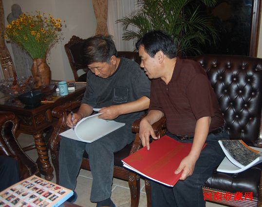傅世光与河南省人大常委、河南省文联主席、河南省美协主席马国强在一起
