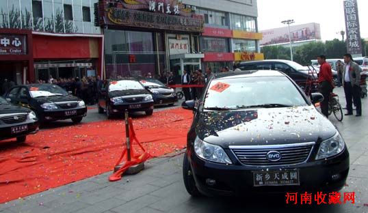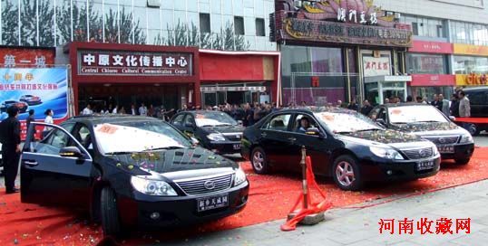 ——中原文化传播中心“名人书画进万家”九辆奖品轿车盛装亮相