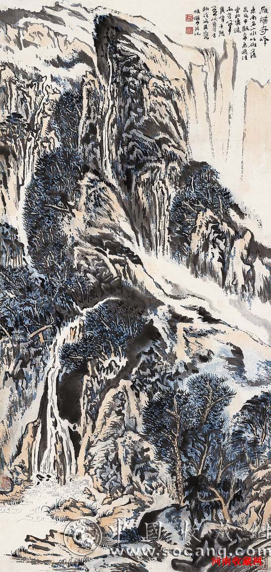 作为一代艺术大师和美术教育家的潘天寿,传世作品甚少,他的绘画不仅笔墨苍古、凝炼老辣,而且大气磅礴,雄浑奇崛,具有慑人心魄的力量感和现代结构美。Lot680《山水》作于1945年,正值他艺术创作的盛年,虽然题材为常见之景,但经他的妙笔,却能产生出不平凡的艺术感染力。Lot762黄宾虹《山水图》,作于1949年,是其典型的由“白宾虹”向“黑宾虹”转型的作品。虽然与其稍后的手笔相比,这幅作品用笔相对规矩,但反映了他此际的画风,可谓承前启后,值得关注。