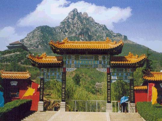 回首进中天门,迎面便是始祖山轩辕阁前的石碑,上刻李德生题写的碑文“巍巍具茨山,文明八千年”。始祖山轩辕阁是四层楼阁,红墙绿瓦,雕梁画栋,挑角飞檐,雄伟肃穆。登上楼阁,极目四望,顿觉心旷神怡。往西看,峰峰岭岭起波澜,重峦叠嶂山连山;往北看,绿野无垠大平原,九曲黄河入青天;往东看,水库似镜银光闪,溪水淙淙流深潭。