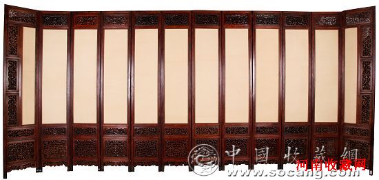 明晚期 黄花梨雕螭龙十二扇大屏风 300×56cm×12扇