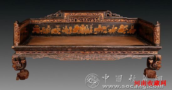 乾隆御诗博古描金漆御榻 202.5×125×93.5cm