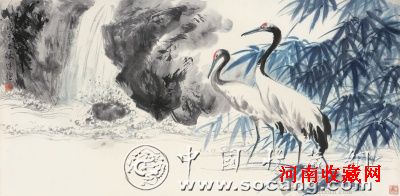 黄达聪 双鹤献寿 设色纸本 镜片 1978年作; 款识:戊午立秋达聪。; 钤印:黄达聪印、间底乾坤 估 价 RMB:10,000-15,000
