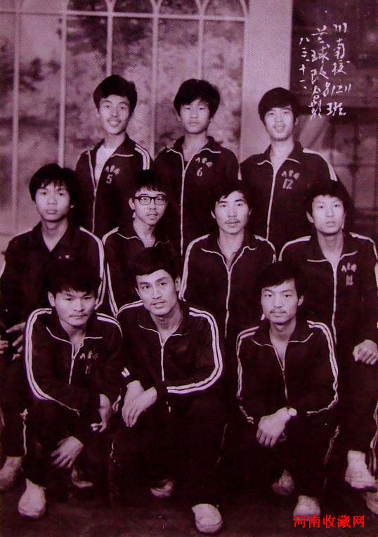 阎文武、徐俊、周克文、郭杰、李明春、邓若增(时任中国女排教练)、刘明书合影