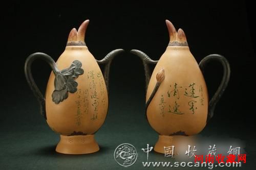 紫砂艺术品专题:宜兴紫砂,始于宋而盛于明清,古人将紫砂土喻为“珠玉”,留下“人间珠玉安足取,岂如阳羡(宜兴之古称)溪兴一丸土”的赞语,宋代欧阳修也有诗咏道:“喜共紫瓯吟且酌,羡君潇洒有余清”。诗人苏轼居住宜兴时,爱好一种提梁式砂壶,即为“东坡壶”。明代嘉靖、万历年间出现两位造壶大师——供春和他的徒弟时大彬,供春制品被称为“供春壶”,造型新颖、质地薄而坚实,有“供春之壶,胜如金玉”之誉。而今,宜兴当代紫砂工艺师们技术精湛,创作面貌百花齐放,其作品已成为收藏家们争相追捧的高端收藏品。这次保利上拍的百余件紫砂壶系为业务人员奔赴香港、台湾、上海等地精心征集、筛选而来,并为当代名家代表作品,或是多次出版,或备艺术家鉴定证书。如裴石民、吴云根、王寅春、高海庚、朱可心、顾景舟、蒋蓉、何道洪、汪寅仙等国家级、省级工艺大师们的精美作品。其中:顾景舟的《十一头提梁壶》一壶配五碟五盘,原为宜兴紫砂博物馆原件。壶体扁而呈圆柱形,结构严谨,刚中带柔,和谐匀称,虚实节奏协调,轮廓造型端庄周正,结构严谨,比例和谐匀称,线条简洁明快,是当代经典的茗壶之一,也是顾老毕生的经典之作。蒋蓉、范曾《莲藕倒流壶》曾出版于《中国紫砂茗壶珍赏》,壶身形似一段白藕,高脚嫩身,带藕芽,一片莲叶依节卷起做流,另一莲梗贴身为把,造型趁势。脉、刺梗、荷枝均刻画的精细入微。尤其是装饰变化,别具一格。蒋老的高超技艺,使莲藕倒流壶的形象、色泽及表面的纹理都达到了出神入化的境界。加之身体上附刻书画大师范曾的“出污泥而不染,濯清涟而不妖”,更加提升了此件作品的艺术精华。如今,两位老先生的合作已成绝笔,纵观其艺术价值、历史价值以及稀有性,此作,实为一件可遇而不可求的当代紫砂壶极品。