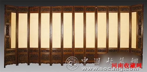 74号拍品明 黄花梨雕龙纹十二扇宫廷大屏风