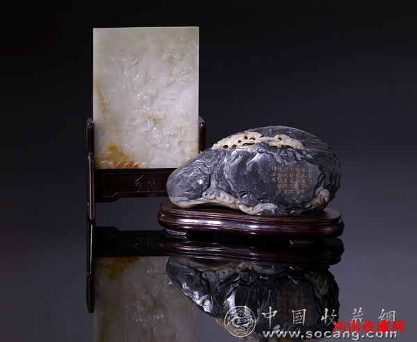 清乾隆御制黑白玉题诗句山子 长23.5厘米