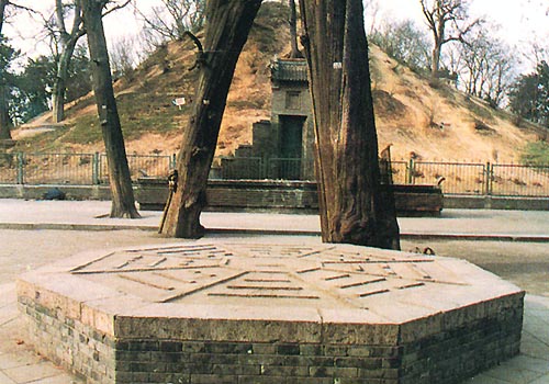 在淮阳城北1公里处。太昊伏羲是我国远古神话传说中的一个圣明帝王,他“为百王先”,居三皇之一,列五帝之首。他在人类社会从母系向父系,由野蛮向文明进化时期,以自已的聪明和智慧,立下了齐天功绩。后人因此称他为“始祖”、“斯文鼻祖”。“太昊”即是人们对伏羲的赞词,意为伏羲功德无量,向日月那样光明。为纪念祖先功德,春秋时这里已建伏羲陵墓。当年孔子周游列国来陈国,陈灵公曾陪同孔子观瞻陵墓;三国魏曹植曾<封思王于陈,拜谒伏羲祠后作《伏羲赞》。唐宋以来,太昊伏羲的陵墓不断扩建,包括陵地和祭祀的庙宇,占地广875亩。今存陵园内建筑为明代建筑,结构与明代皇宫相仿。它分内外二城,内城叫紫禁城,外城叫皇城。城内古柏夹道、碑刻林立、晨钟墓鼓、声闻数里。统天殿又叫大殿、前殿,是整个陵园中最大建筑,殿高米,面积390平方米;殿内有高大的神龛,内塑伏羲坐像,左右配有神农、黄帝、少昊、颛项塑像。太昊伏羲的陵墓高20多米,周长150多米;上呈圆形、下有方座,象征“天圆地方”,陵前有宋代青石碑一座,宽3尺,高15尺,上镛“太昊伏羲氏之墓”个大字,据传此碑为苏小妹用巾作笔写成。