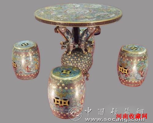 清乾隆 掐金丝珐琅圆桌连鼓凳(五件套)