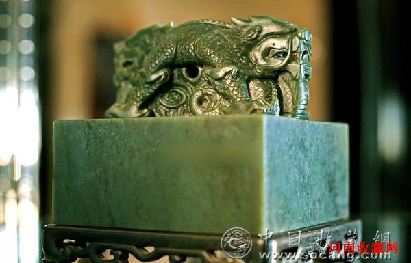 北京时间11月4日晚10时,伦敦苏富比拍卖行举行了一场中国瓷器及工艺品拍卖会,共有261件珍品参与拍卖,其中最重要的一件是乾隆玉玺“八征耄念之宝”,起拍价为60万英镑。这枚玉玺是乾隆皇帝为纪念在位55年,为庆祝其80寿辰而特别制作的,采用和田青玉雕制,印面为12.7厘米×12.7厘米。