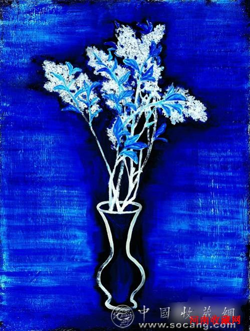 常玉《蓝底瓶花》