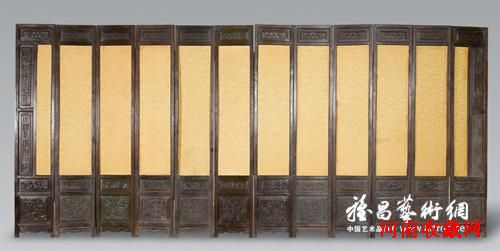 清乾隆 黄花梨雕花卉纹屏风十二扇