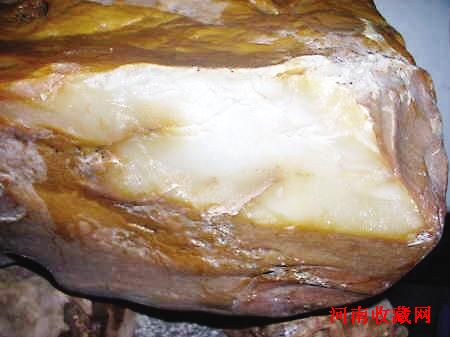 赵老师说,从该石一角揭去“石皮”的小断面观察,石质呈乳白色、半透明、光泽度好,具备了玉石的基本特征。若经专业仪器测定,此石的硬度能达到7度,就可断定它是玉原石精品了。