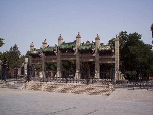 1916年建成的袁世凯陵园是中国第一座中西结合的陵园。陵区共分为两部分,前部分为清代皇室陵墓建筑方式,最南端为望柱。过望柱便是石人、石狮、石马等雕像区。其后是一座巨大的碑亭。墓碑后,为三间传统的中国古典大殿,大殿均仿清代建筑,红墙绿瓦,雕梁画栋,富有民族特色。