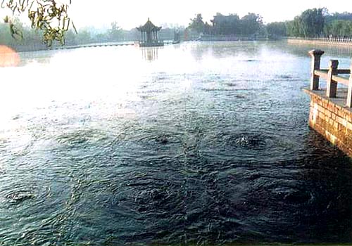 百泉历经开凿,清乾隆十五年,绕岸砌石,成一长方形泉湖,湖中心有一条青石板铺成的小径,曲曲折折,将湖中的亭阁小桥联在一起。钓鱼亭、湖心亭、南大厅、下马亭、课桑亭、涌金亭、喷玉亭、灵源亭、错落有致地点缀在湖畔,独具匠心地玉立在湖间,玲珑秀丽,煞是好看。