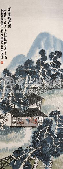 齐白石作品仍然是全场亮点。齐氏的山水作品不多,而于山水画中再绘人物场景更为难得罕有。《审音鉴古图》(96.5x37.5 cm),约为白石老人于七十一岁时所作的山水精品之一,若以人物的数量而言,仍是白石老人少有之佳作。此外,画家以方正楷书为画作题识,至今已稍为罕见。该数行大小不等的楷书长题支撑了整幅画面的神韵与气势,实为以楷书题写款识的作品中难得之佳购。作品估价200至300万港元,最终以542万港元成交;其作品《铁拐李》(132.6 x 38 cm.)和《乘云注雨》(180.3 x 49 cm)均以5,06万港元成交,取得良好成绩。