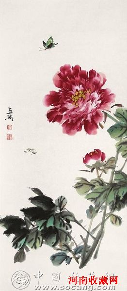 王雪涛《牡丹图》100cm×40cm 立轴 设色纸本