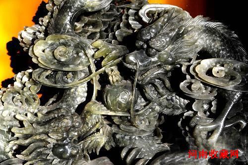 莱州玉雕代表作《二龙戏珠》局部