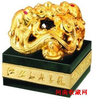 新中国首第一宝印毛泽东金龙玉玺由中国收藏家协会、全国毛泽东纪念馆联谊会、韶山毛泽东纪念馆联合监制发行;每套均配有收藏证书,公证书,国家对和田玉、黄金、白银、红宝石的监定证书以及各大博物馆收藏证书共20份;为保证其无与伦比的至尊地位和极大的升值空间,国家批准限量发行1893尊,每尊均刻有惟一编号,全国统一迎请价9900/尊。