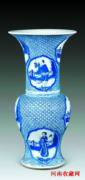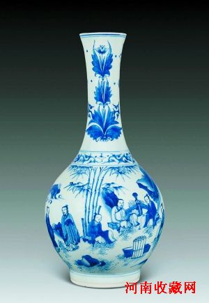 明崇祯青花高仕人物纹长颈瓶H37cm估价:10-15万