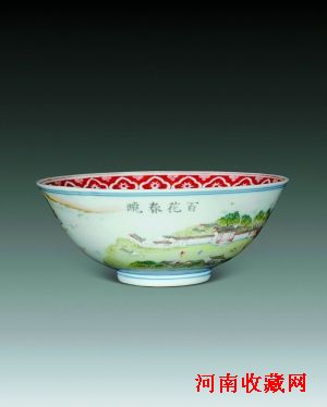 清嘉庆粉彩贡景“百花春晓”碗D14.5cm 估价:20-30万